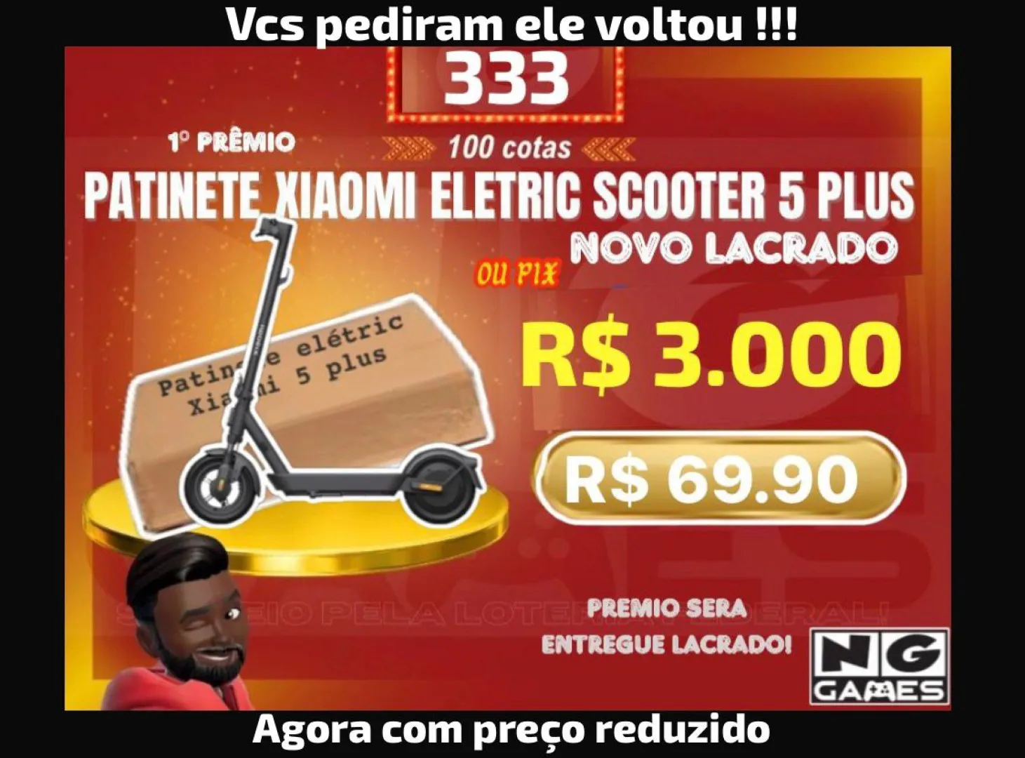 AÇÃO 333 PATINETE SCOOTER XIAOMI OU R$ 3.000 pix